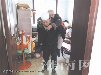 王忠奎告訴淮河早報(bào)、淮南網(wǎng)記者,父母共有6個(gè)孩子,他排行第四。父親從礦上退休比較早,每月退休金也不高,兄妹們的生活也都不寬裕。2014年,因礦業(yè)集團(tuán)啟動(dòng)棚改工程,住了幾十年破舊公房的他們終于搬到新建的新建小區(qū)內(nèi),擁有了寬敞明亮的樓房。可全家還沒高興多久,三哥就因病情發(fā)展而癱瘓?jiān)诖擦恕!翱吹礁改改昙o(jì)這么大還要忙這忙那,我心有不忍,就和妻子商量,主動(dòng)擔(dān)下了照顧父母和哥哥的重任。而妻子為了讓我安心工作,承擔(dān)了大部分的家務(wù)活,一日三餐、打掃衛(wèi)生不說,有時(shí)還要背起比她重很多的三哥去廁所,累得腰都直不起來。”王忠奎說,這幾年多虧了妻子的精心照料,癱瘓?jiān)诖驳母绺绮艣]有病情惡化,而父母和他也因此省心不少。