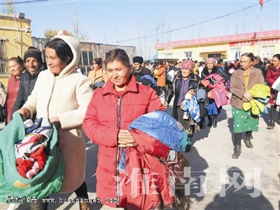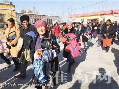 當天,數(shù)千件由淮南日報社運抵伽師縣的“情暖新疆”愛心棉衣在這個村得到了分發(fā),身處寒冬的村民們,再次感受到了萬里之外淮南人民的濃厚情誼。淮河早報、淮南網(wǎng)記者通過伽師縣青年志愿者公益協(xié)會負責人米爾阿力木提供的現(xiàn)場照片看到:陽光下,村民們在當?shù)伛v村干部及志愿者的幫助下試穿并自由挑選了衣服,他們有的拿了兩三件,有的提了一大袋,各個喜笑顏開滿載而歸。