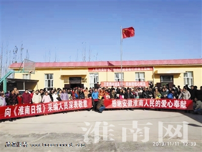 “萬里捐衣送溫暖、民族團結(jié)心連心”、“感謝安徽淮南人民的愛心奉獻”、“向《淮南日報》采編人員深表敬意”,11月11日中午,新疆喀什地區(qū)伽師縣和夏阿瓦提鄉(xiāng)歐吐拉英買里村百余名村民拉著幾幅印著上述文字的橫幅,面對鏡頭不斷向淮南人民表達著感謝。