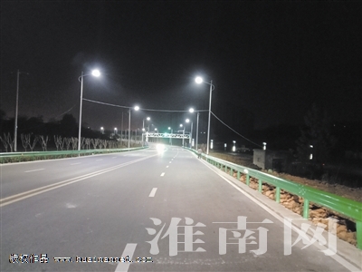 11月18日晚,華燈初上時,淮河早報、淮南網記者在該路段看到,道路兩邊的路燈全部亮起;幾處紅綠燈、機動車違章抓拍探頭,以及其它交通標識設施也已安裝完畢并啟用。一些市民,三三兩兩在路兩側的人行道上閑情漫步,顯得十分愜意。