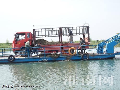 放流現(xiàn)場(chǎng),淮南市馭風(fēng)水產(chǎn)專(zhuān)業(yè)合作社拉來(lái)的兩大車(chē)15噸螺貝通過(guò)渡船依次放流至淮河干流中央水域,以利這些底棲生物迅速分散,增加成活率。漁政人員介紹,螺貝為底棲生物,具有凈化水體的作用,同時(shí)也是一些底棲魚(yú)類(lèi)的餌料,是生物鏈的主要一環(huán)。下一步,還將繼續(xù)在此地放流淮王魚(yú)等,增加保護(hù)區(qū)特別是淮王魚(yú)、江黃顙等保護(hù)品種的種群數(shù)量,改善種群結(jié)構(gòu),強(qiáng)化保護(hù)區(qū)的建設(shè)。圖為渡船上裝載螺貝的車(chē)輛在淮河干流中央進(jìn)行放流。
