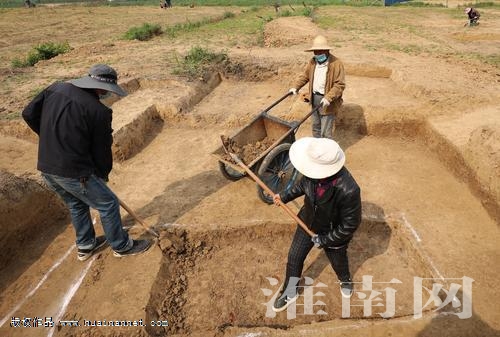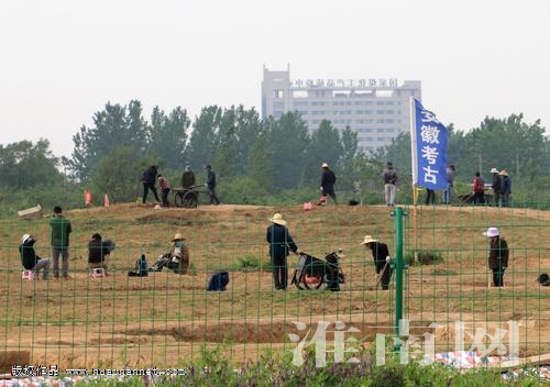 安徽省文物考古研究所考古三室主任張輝擔任此次發掘領隊,現場,他向淮河早報、淮南網記者介紹了分區分期發掘計劃。計劃發掘總面積約1520平方米;分為三個區域,其中Ⅰ區古墓葬7處、發掘面積200平方米,工作周期約35天;Ⅱ區古墓葬10余處、探溝2條、發掘面積370平方米,工作周期約60天;Ⅲ區古墓葬20余處、探溝1條、灰坑1處、發掘面積950平方米,工作周期約90天;全部發掘周期約200天。從4月進場開始,整個發掘工作大約持續到10月結束。發掘方法采取在全面揭露小型墓葬的基礎上,重點對中型墓葬封土堆積保存相對較好的區域布設十字形探方進行發掘,詳細了解封土堆積情況及墓葬形制,利用探溝了解壕溝與古墓葬的關系。
