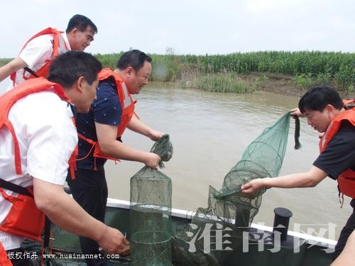7月3日,在淮南市農業農村局組織下,全市保護區禁捕工作會議在淮南漁政船34612號上舉行,涉保護區的各縣區漁業部門主管領導參會。會議進行中,淮南漁政船34612號溯淮河而上,從田家庵段往鳳臺段巡航,開展保護區禁捕聯合執法行動,對保護區發現的捕撈網具予以拆除。
