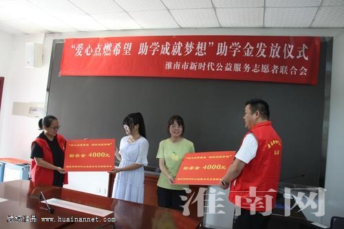 (記者 王玲)9月7日下午,淮南市新時代公益服務志愿者聯合會的志愿者分別來到壽縣和鳳臺縣,為四名貧困準大學生送去愛心款,圓她們的大學夢。