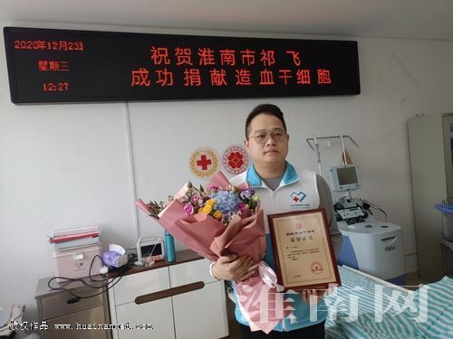 12月23日,淮南小伙祁飛成功完成捐獻 成為淮南市第36例、省第286例造血干細胞捐獻者