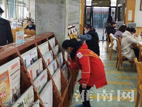 當天下午1時30分許,這六名學生和其家長們早早地來到淮南市圖書館等候,在和圖書館管理員進行溝通后,六名小學生跟著圖書館管理員走進閱覽室。閱覽室里干凈整潔,有不少市民在安靜地看書看報,看著一塵不染的閱覽室,孩子們顯得不知所措。在老師的安排下,三名男生去整理書架,三名女生則打濕了抹布開始擦報架和書架。半個小時后,閱讀室里送進來兩摞最新的報紙,圖書館管理員開始把報紙按順序整齊地擺放在書桌上,孩子們圍在書桌前,一邊看著一張張報紙被管理員擺放整齊,一邊聽管理員小聲地說著如何分撿這些報紙。隨后,每張報紙又用報夾夾了起來放在報架上供市民選看。