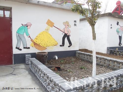 1月間,淮河早報、淮南網記者前往大興鎮閆湖村。沿著茨淮新河堤壩向西,看到堤壩旁滿是整齊的水杉林。前行一段路程,在一處路口左拐向南,下了堤坡過一小段路,便到了閆湖張王中心村,閆湖行政村村部也設于這里。但見這兒村容整潔,每家住戶門前,都有圍圈的小塊園地,青磚白線,清新雅觀,村民們可以在小園里種菜、栽花、植果樹等,被稱為“五小園”。而沿途墻壁上,彩繪著村規民約、道德規范、主題詩畫等內容的宣傳墻畫,引人注目,這一幅幅繪制出的鄉村嶄新面貌,把村民們的幸福生活都襯托出來。