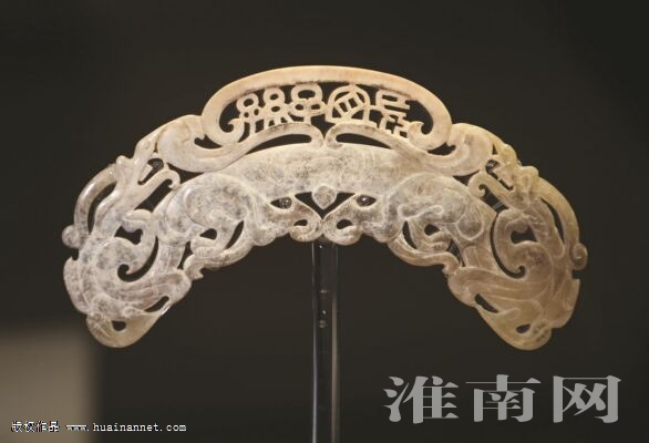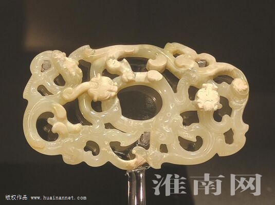淮河早報(bào)、淮南網(wǎng)記者仔細(xì)觀察,此件玉器以心形鏤空環(huán)為玉佩中心,一周由三條相互纏繞的圓雕蟠龍構(gòu)成主題紋飾,三龍扭動(dòng)身軀,形態(tài)各異,近觀龍形,身姿十分飄逸。楊柳介紹,玉佩選用上等和田白籽料,采用鏤雕、圓雕、透雕、巧雕、陰刻等多種技法相結(jié)合雕琢而成。“這種龍紋佩飾在漢代極為盛行,但此件玉佩以其完美的選料和雕琢工藝,成為我館玉器藏品中的代表。”