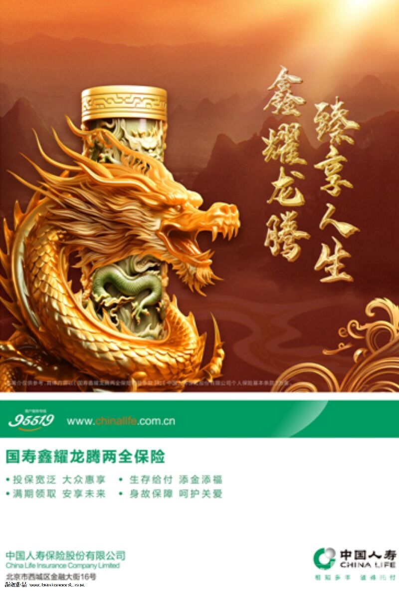 選擇“鑫耀龍騰”,洞見美好明天,護航幸福生活。中國人壽壽險公司始終陪伴在廣大客戶身旁,不忘初心,砥礪前行,傾情守護人民美好生活。未來,中國人壽壽險公司將繼續深耕壽險沃土,為廣大保險消費者提供更加簡捷、品質、溫暖的保險保障服務,切實提升人民群眾的獲得感、幸福感和安全感。