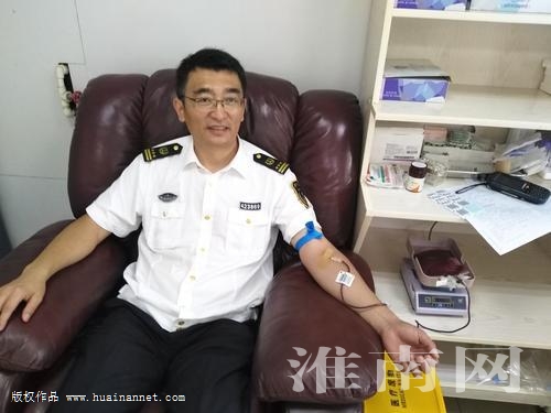 汪浩參加無償獻血活動(圖片由市地方海事(港航)管理服務中心提供)