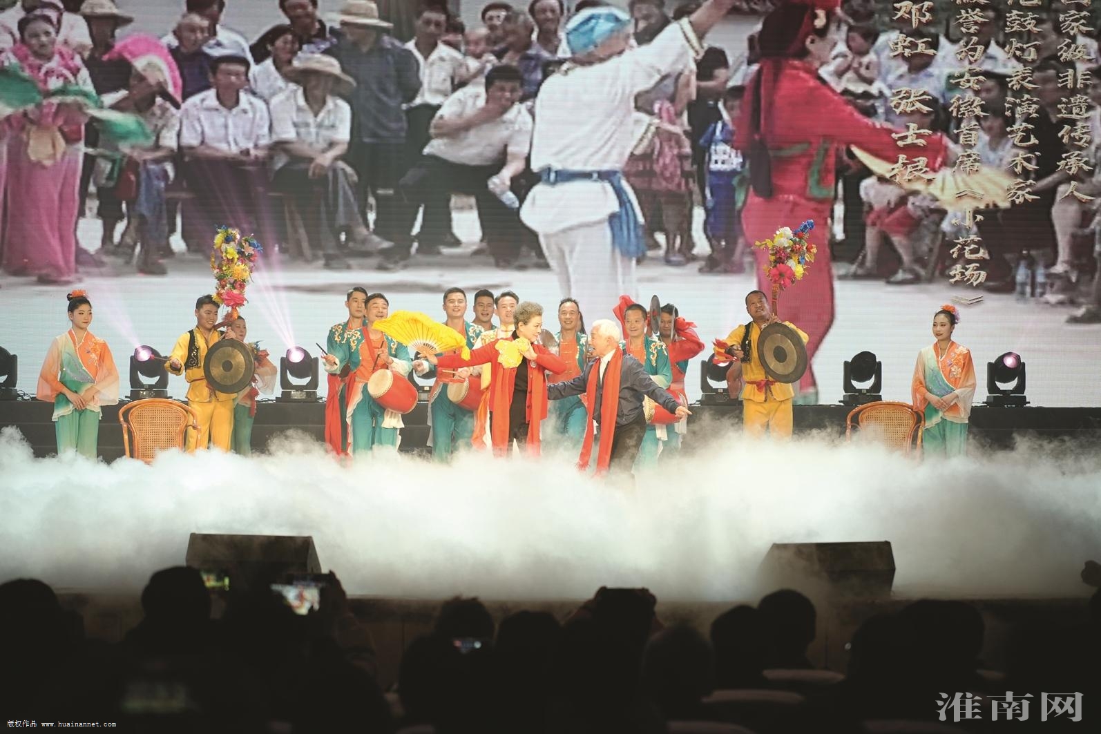 在鳳臺縣舉辦的慶元旦迎新春暨“我們的四十年”鳳臺花鼓燈匯報演出中,鄧虹、張士根和花鼓燈藝校歷屆優秀畢業生共同表演了花鼓燈舞蹈《回家》。