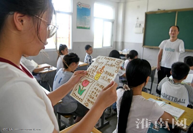 學(xué)生制作教師節(jié)賀卡,為周勇老師送上節(jié)日祝福。