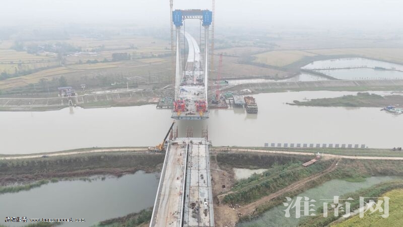 圖為S16合周高速淮南段東淝河特大橋主橋建設正加緊推進。