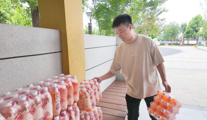 (記者 廖凌云 攝影報(bào)道)7月9日上午,位于淮南高新區(qū)E水系體育公園的工會(huì)驛站迎來了一份特別的“清涼禮物”——“00后”創(chuàng)業(yè)青年孫傳龍主動(dòng)捐贈(zèng)二十余箱汽水,為高溫下堅(jiān)守崗位的環(huán)衛(wèi)工人送去夏日關(guān)懷。