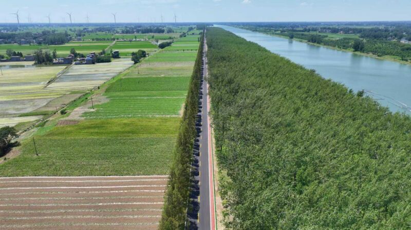 此次提質(zhì)改造的苗孫路全長10.5公里,采用瀝青混凝土鋪設(shè)。新道路宛如一條黑色綢帶依偎著茨淮新河,從鳳臺縣大興鎮(zhèn)常興橋蜿蜒至朱馬店鎮(zhèn)康圩大橋,將大興鎮(zhèn)趙王村、瓦房村、閆湖村及朱馬店鎮(zhèn)李廟村、康圩村等多個村落緊密串聯(lián)。車行其上,茨淮新河的粼粼碧波、兩岸的蔥郁林木與錯落的田園景致交相輝映,途經(jīng)風(fēng)景如畫的淮上明珠風(fēng)景區(qū),每一次通行都成為與自然的愜意邂逅。