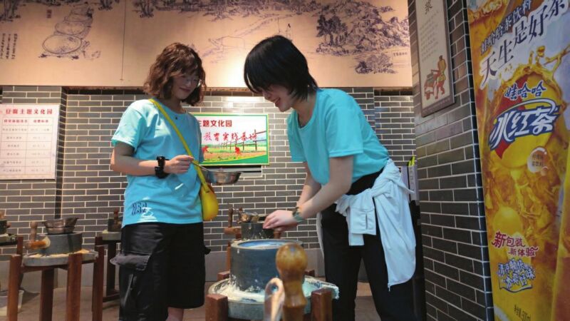 活動首日,大學(xué)生們首先來到壽縣古城墻下,領(lǐng)略這座千年古城的厚重歷史。隨后,大家參觀二十四節(jié)氣館,探尋中國傳統(tǒng)農(nóng)耕文化的智慧。下午,大學(xué)生們走進安徽八公山豆制品有限公司,親手體驗豆腐制作工藝,品味中華傳統(tǒng)美食的匠心傳承。在安徽楚文化博物館,大家通過豐富的文物展陳,感受楚風(fēng)漢韻。在八公山國家地質(zhì)公園,大學(xué)生們欣賞了美輪美奐的光影秀,了解劉安煉丹、發(fā)明豆腐的故事,在景區(qū)夏夜納涼中,欣賞八公山美麗夜景。