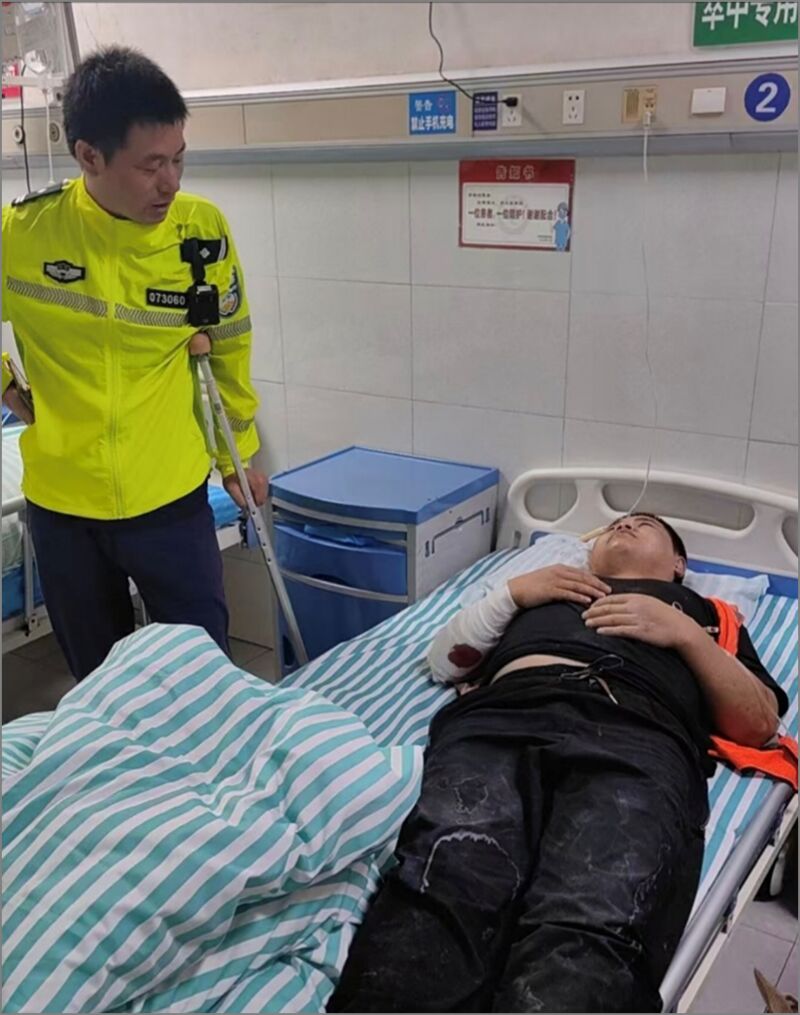 時間來到6月份,當月3日晚,楊坡帶隊在水廠路與電廠路交叉口執行全市酒駕醉駕專項整治統一行動,一輛二輪摩托車行至臨檢點前約50米處時突然強行掉頭,加速逆向行駛。見此情況楊坡協同輔警立即對其進行喊話攔截,但是駕駛人無視指令,慌亂中騎行駛入附近居民區的一條胡同內。在胡同拐角處,楊坡率先追上嫌疑人并表明身份要求其配合調查。令楊坡沒想到的是,摩托車駕駛人不僅不聽指令,反而棄車奔逃并激烈反抗,最終在增援民警的協助下,這名駕駛人被成功控制。過程中,楊坡右臂、左膝、面部多處嚴重擦傷,警服破損,執法記錄儀部分損壞。后經查證,這名駕駛人不僅醉駕且無證駕駛。事后,楊坡放棄了靜養治療,帶傷歸隊,堅持參加了高考、中考護考工作。統計顯示,二季度楊坡帶隊查緝酒駕違法行為11起,處置簡易程序事故200余起,成功調解案件150起。