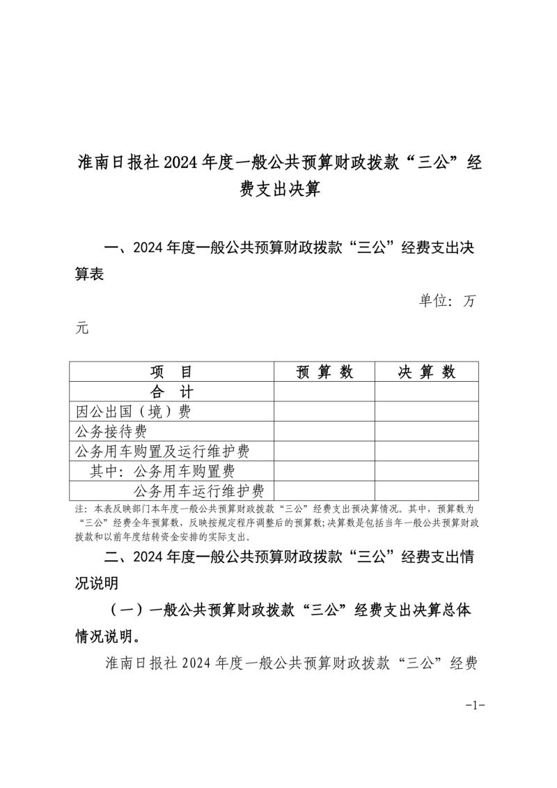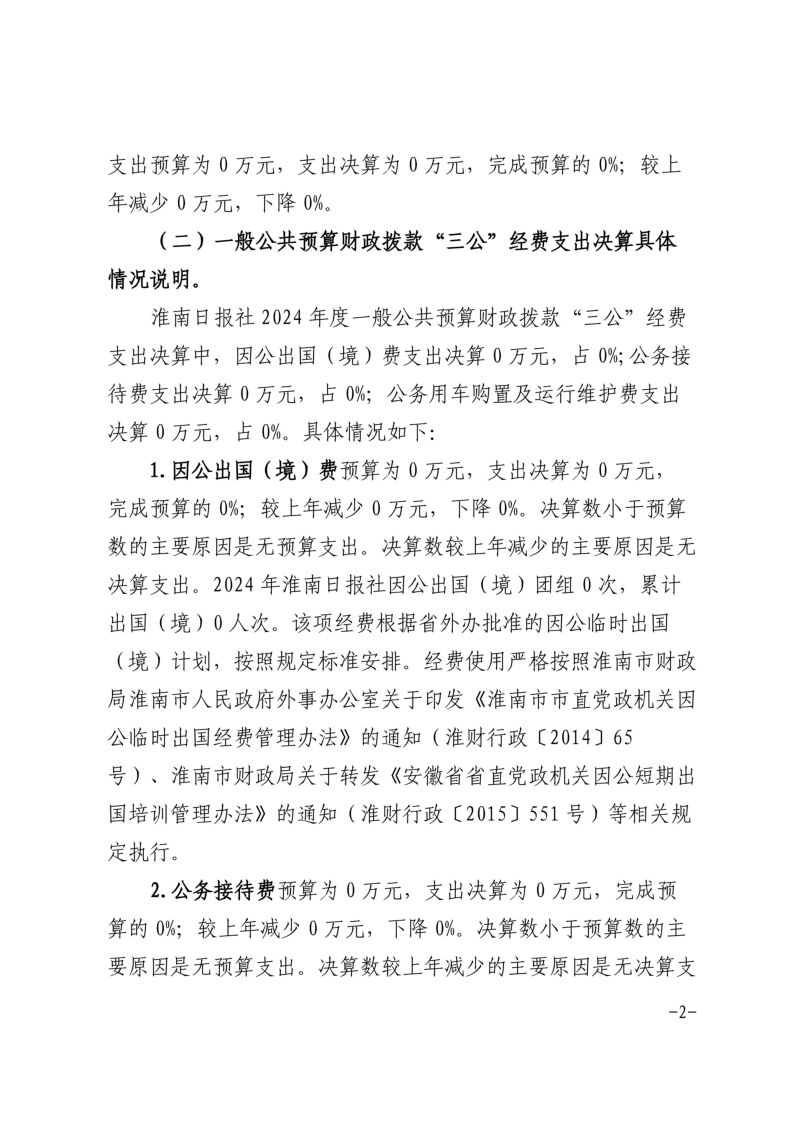 淮南日報社2024年度一般公共預算財政撥款“三公”經費支出決算