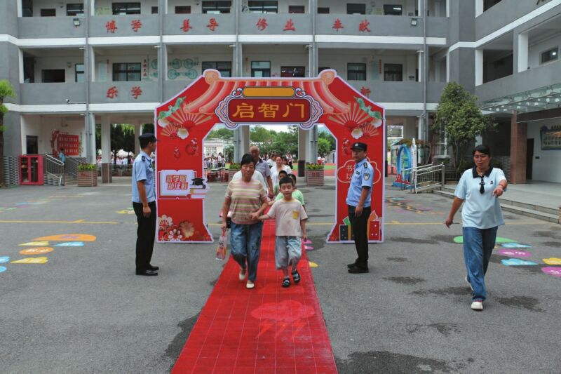 伴隨著悠揚的旋律,朝氣蓬勃的一年級學子們在班主任的帶領下,牽著家長的手,昂首挺胸走過啟智門,開啟全新的生活學習之旅。隨后,校領導和老師用朱砂在學生額頭點上紅痣,寓意著孩子們能夠開啟智慧。教導處副主任現場講解如何書寫“人”字,讓孩子們感受到了中華優秀傳統文化的魅力。通過描紅“人”字,孩子們學會了坦誠正直、頂天立地。