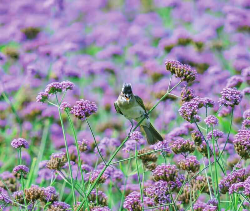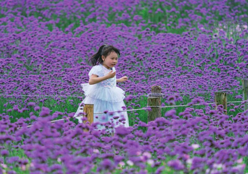 淮南的白露“花代”——馬鞭草是馬鞭草科馬鞭草屬多年生草本植物,細長的穗狀花序生于植株頂部或腋部,因頂生花序狀如馬鞭而得名。其花朵小而密集,紫色、粉色或白色等色彩形成美麗花序,是園林中常見的觀賞植物。馬鞭草喜溫暖、不耐寒,常見于山坡與荒地,淮南的氣候、地形與水文等自然條件都非常適宜其生長。馬鞭草的花期在6月至9月,白露時節其花期即將結果,花朵更加飽滿。此時欣賞馬鞭草花海,猶如置身彩色云霞之中,格外夢幻,因此將馬鞭草確定為白露時節的淮南代表性花卉。潘集區架河鎮武廟生態園、淮南高新區E水系帶狀公園都是觀賞馬鞭草花海的絕佳地點;舜耕山環山步道、安徽理工大學北外圍人行步道、人民公園、如意公園等處規模雖小,卻也別有一番情趣。