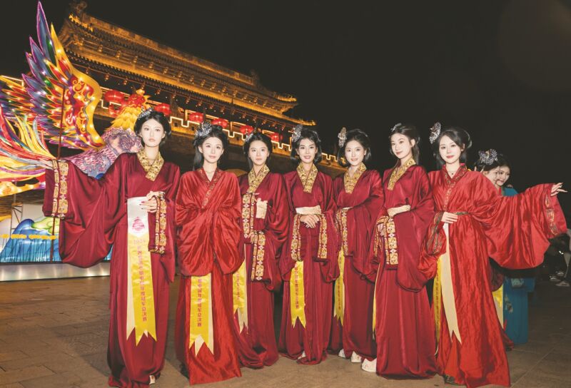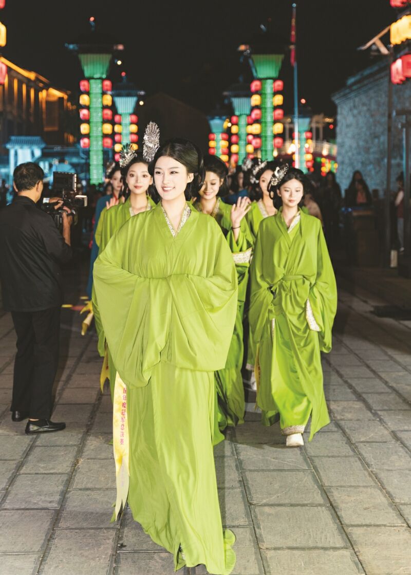 磚石斑駁的古城墻上,一群身著戰(zhàn)國袍的佳麗裊裊走過,千年車轍深深的青石板路與現(xiàn)代時(shí)尚氣息交織,仿佛完成了一場穿越時(shí)空的對話。