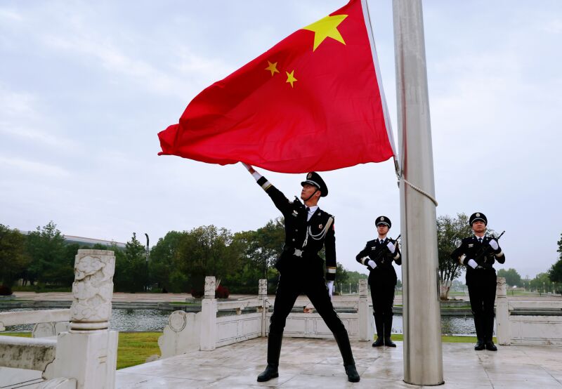 10月1日上午,我市組織機關干部、少先隊員及各界群眾,在市政務中心廣場舉行升旗儀式,慶祝中華人民共和國76周年華誕。
