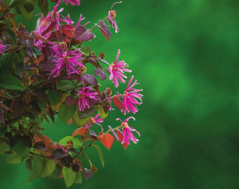 霜降的淮南“花代”——紅花檵木是金縷梅科檵木屬常綠灌木,花朵盛開時,3-8朵帶狀花瓣的小花簇生在枝梢頂端,花開滿樹,極為壯觀。紅色如團團火焰,熱情怒放;紫色如絲綢輕舞,嬌美多姿;白色如蟬翼菲薄,雪掛枝頭。向陽丘陵和山地是檵木非常適宜的生長環境,淮南主城區中央的低矮群山中,檵木植株隨處可見。《淮南市城市綠化工作導則(試行)》將紅花檵木作為城市綠化的推薦品種,對苗高、冠帽和種植密度都加以規范。按照《導則(施行)》標準,洞山、五一、淮河、老龍眼濕地等公園都栽植了成片的紅花檵木,市區主干道重要交口的草花改造也增加了紅花檵木。紅花檵木春秋兩季開花,現在正當秋季盛花期九十月份,特將其確定為寒露時節的淮南代表性花卉。