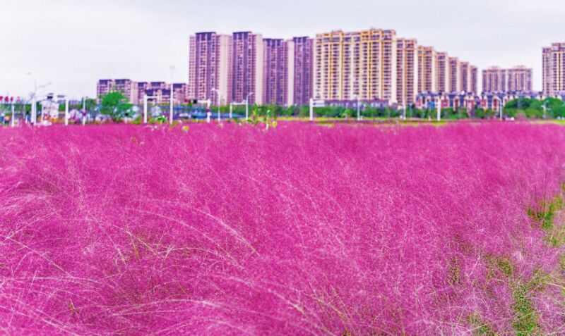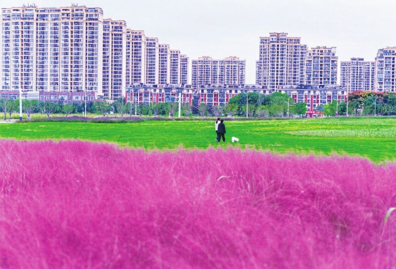 秋意漸濃,淮南高新區如意公園的粉黛亂子草綻放成一片夢幻海洋。如煙似霞的粉色花穗隨風搖曳,在公園大草坪上泛起溫柔漣漪,為城市披上浪漫濾鏡。漫步其間,齊腰的粉色云霧縈繞身側,仿佛闖入莫奈的油畫世界,成為人們拍照打卡的絕佳勝地。