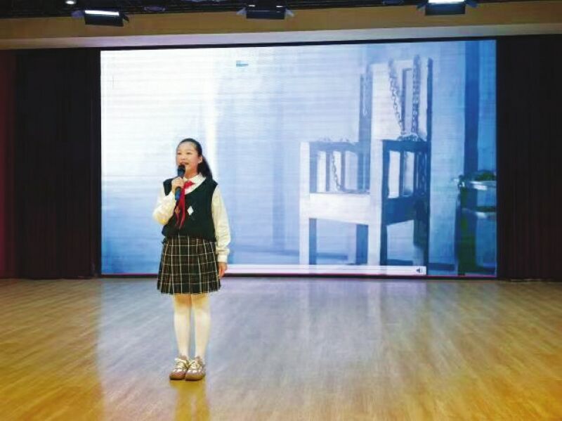 活動現(xiàn)場莊重熱烈,在“誦經(jīng)典”環(huán)節(jié)中,兩校學生代表聯(lián)袂朗誦抗日主題現(xiàn)代詩,激昂語調(diào)中飽含對革命先輩的崇敬;在“看短片”環(huán)節(jié)中,通過抗戰(zhàn)歷史影像生動再現(xiàn)烽火歲月,使師生深切感悟和平的來之不易;在“說故事”環(huán)節(jié)中,學生們先后講述了楊靖宇、趙一曼等英烈的感人事跡,真摯的講述打動全場,掌聲多次響起;在“舞崢嶸”環(huán)節(jié)中,學生們表演的紅色舞蹈,用肢體語言再現(xiàn)軍民同心抗敵的熱血場景;在“談感受”環(huán)節(jié)中,以相聲形式呈現(xiàn),兩名學生結(jié)合今昔生活對比,暢談對強國建設(shè)的理解,盡顯新時代少年的責任擔當。