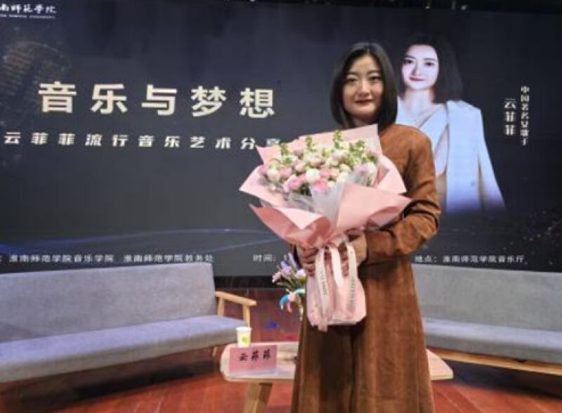 鎂光燈下,一襲棕色連衣裙的云菲菲微笑著望向臺下那些年輕而熱切的眼睛。11月5日在淮南師范學院音樂廳,近400名大學生與云菲菲共度了一場看似演唱會、實則遠不止于此的分享會。這不是一場普通的演唱會,而是一次靈魂的返鄉——一位從淮河岸邊走向全國的歌者,帶著她的音樂與夢想,回到了滋養她的土地。