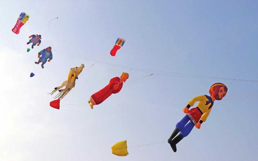日前,途經(jīng)淮南科技館西側廣場,忽見天空浮現(xiàn)斑斕夢境——一個個娃娃、各式景物造型的風箏在空中翩躚起舞,它們中有《哪吒鬧海》里的經(jīng)典神話形象,有《西游記》里的八戒、悟空等等,這些故事里的神話人物造型風箏栩栩如生,在澄澈藍天的映襯下絢麗奪目。經(jīng)了解,這一空中奇景出自一群退休的老年風箏愛好者之手。冬日的暖陽下,他們以絲線牽動童趣,在廣場上空織出夢幻的天幕,悄然綻放出一個舞動的童話世界”……通訊員王傳旭