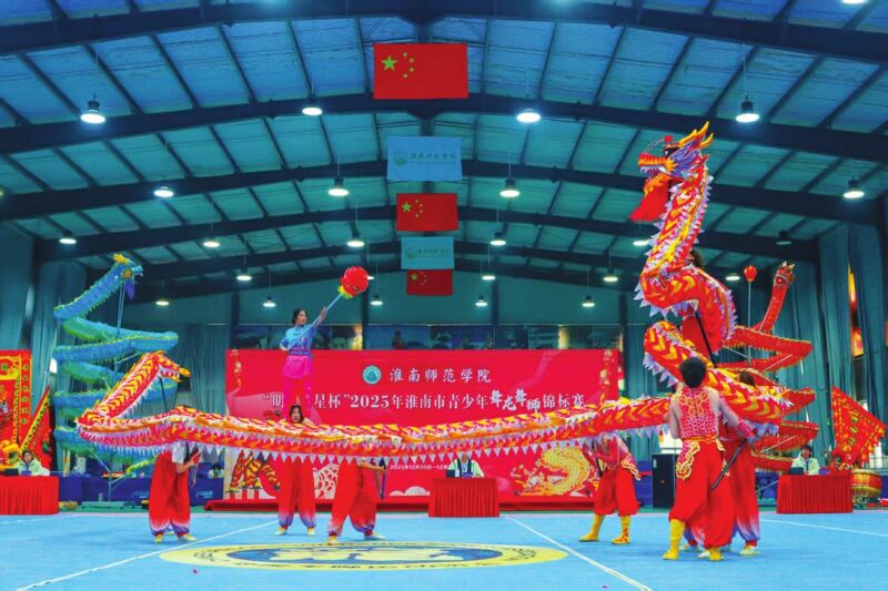 當天下午,由市教體局、團市委主辦,淮南師范學院、淮南市龍獅運動協會承辦的2025年淮南市青少年舞龍舞獅錦標賽火熱開賽。賽事匯聚24支隊伍,覆蓋高校、高中、初中、小學全組別,舞龍、舞獅、彩帶龍三大項目同臺競技,青少年以矯健身姿傳承非遺魅力,盡顯淮南青少年昂揚向上的精神風采。