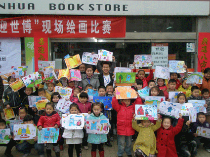 “海寶游龍湖公園”、“海寶橫渡淮河”、“奧運(yùn)五福娃與海寶”……看著一張張以上海世博會(huì)為主題構(gòu)思精巧的兒童畫,人們不禁驚嘆孩子們天真浪漫的想象力。3月27日上午9時(shí)許,我市50名兒童齊聚泉山新華書店門前,參加“百只小手迎世博”少兒現(xiàn)場(chǎng)繪畫比賽,為即將到來(lái)的上海世博會(huì)送去了一份份純真的祝福。