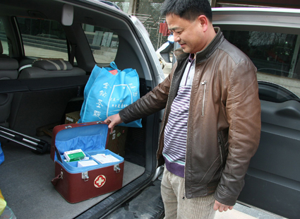 圖二為:愛心人士陳先生攜帶了專業(yè)急救藥箱。