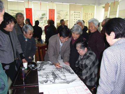 4月30日,在洞山街道黎明社區舉辦的迎“五一”社區老年書畫展為社區居民呈現出一個多彩多姿的藝術世界。社區書畫班也在舉辦這個書畫展的同時成立了。它是黎明社區繼合唱隊和舞蹈隊之后又一社區群眾文化團體。