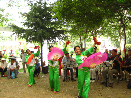 圖:來自市老齡藝術協(xié)會龍泉藝術團的老人們正在激情演出