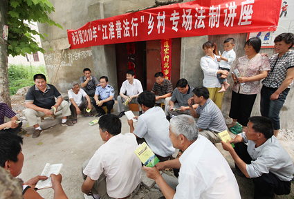 6月24日,淮南市大通區洛河鎮普法工作人員在該鎮林巷村現場解答村民法律咨詢。大通區洛河鎮為扎實開展“江淮普法行”活動,更好地普及農村法律知識,提高農民群眾法律意識,創造平安、和諧鄉村,深入農村聯合開展“江淮普法行”進鄉村活動。
