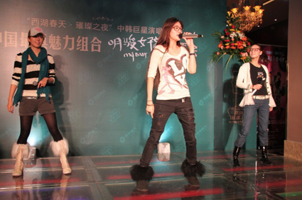當天下午2時許,明駿女孩簽唱會還沒有開始,年輕的歌迷們已經來到了現場,手持海報大喊成員們的名字。1個多小時后,明駿女孩終于在大家熱烈的歡呼聲中登場?匆娕枷駛兲鹈赖男θ荩劢z團再度爆發了歡呼聲。隊長姍姍爽朗可愛、斯諾時尚帥氣、求斯靦腆優雅,乍看起來性格各異的三個成員卻非常默契,她們在現場回答了許多歌迷關注的問題。