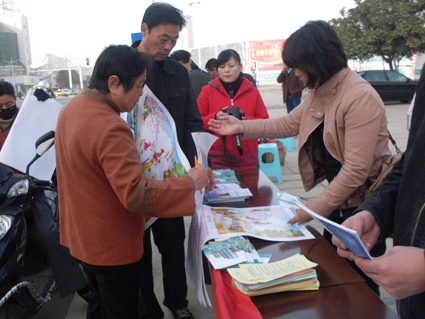 圖為宣傳人員向市民散發(fā)宣傳材料。