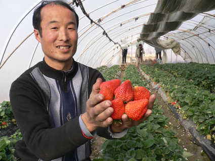 新年伊始,淮南市田家庵區史院鄉的草莓種植基地從日本引進“紅顏”新品種,長勢良好。澗壩村村民王化志的草莓大棚里,記者看到,這兒的草莓比其它的都要大。鮮紅漂亮,果肉多汁、甜香、濃郁,單果重量普遍在1兩以上,深受人們喜愛,市場前景非?春谩
