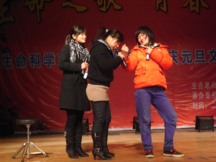 淮南聯大的同學們也帶來了精彩的節目,其中一個綜合節目讓所有人都頗感震驚。這個約20分鐘的節目融歌舞、小品于一爐,每一段都可圈可點,尤其是張琦同學模仿維塔斯表演的海豚音使整個禮堂一片沸騰。張琦同學事后告訴記者,這還不是他的最佳狀態,等到正式演出那天,他會用最佳狀態去力爭拔得頭籌。