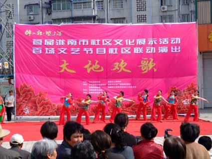 據(jù)了解,為了更好地貫徹黨的十七屆五中全會精神,鼓舞全市人民大建設(shè)、大發(fā)展,滿懷豪情邁向“十二五”的干勁,市委、市政府盛大推出了“大地歡歌”首屆社區(qū)文化展示活動。此次演出是由淮南市委、淮南市人民政府主辦,淮南市委宣傳部,淮南市文化廣電新聞出版局、淮南市民政局等部門承辦,老齡藝術(shù)協(xié)會負責演出。活動堅持面向基層、服務(wù)百姓,文化搭臺、群眾唱戲,對加強社區(qū)文化建設(shè),豐富人民群眾文化生活,營造團結(jié)向上、和諧文明的社會文化環(huán)境。 圖為活動現(xiàn)場。