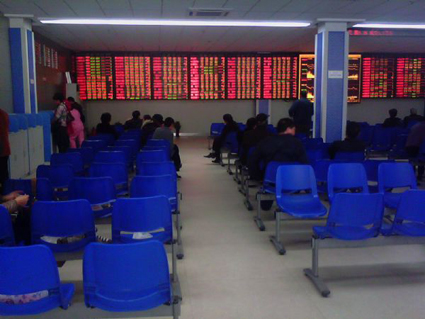 記者看到,在交易大廳內,許多座位都空著,里面的股民以老年人為主,年輕人的面孔很少。有幾個大媽在邊打毛線邊聊天。大廳內顯得很安靜,少數人在電腦前看著股票的走勢圖。隨著股指的不斷走低,股票交易大廳內的股民也變得越來越少。一位老人告訴記者,他的一只股票被套了好幾塊錢,現在他也不著急了,每天來溜達溜達,看看走勢,也稍解點煩悶。下午3點整,當天的股票交易結束了,股指又跌了不少,股民們幾乎沒有做任何停留,匆匆而去。當天下午記者探訪了幾個股票交易廳,情形都差不多。