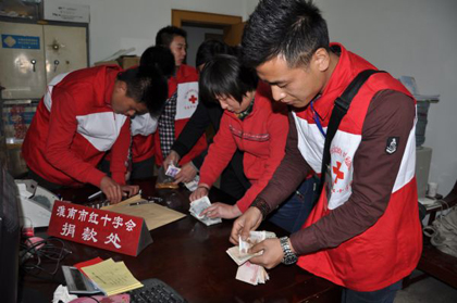 4月21日一早,淮南市紅十字會辦公室一片忙碌,電話鈴聲不斷,工作人員忙著接待來訪來電關(guān)注雅安災區(qū)的市民,接收、清點捐款,說服要求奔赴災區(qū)的志愿者。