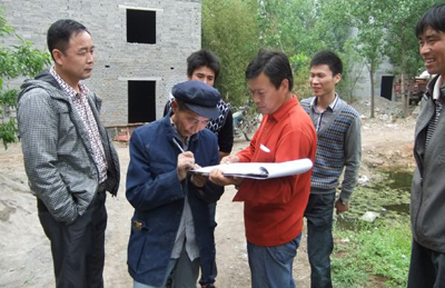 拆遷辦工作人員正在為丈量好的征遷村民的房屋作登記