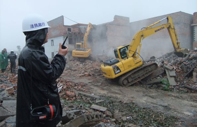 在拆違征遷中,工作人員頂著炎炎赤日,走村串戶,深入村民院落,認真細致地為拆遷戶講政策、說道理。對于白天不在家的拆遷戶,工作人員就采取提前預約,在家門口等或利用晚上休息時間上門做工作;對于思想一時做不通的拆遷戶,工作人員就輾轉先做其親戚、朋友的工作,直到做通為止,以一顆無微不至的“拆遷關愛心”去感動拆遷戶。