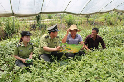 圖:執法人員走到田間地頭為瓜農送上“西瓜地圖”