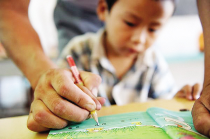 大手握小手,希望在明天。