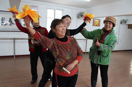 2014年1月12日下午,當記者走進朝陽老年大學時,10多位老人正隨著音樂節拍翩翩起舞,洋溢在臉上的笑容和優美的舞姿,折射出老人愉快的心境。春節臨近,他們要到社區表演,此刻正在排練。“跳得非常好,就這樣保持下去!”一段舞蹈結束,老師彭斯惠帶頭鼓掌。
