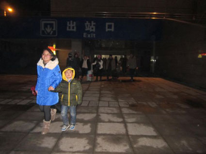 在2月7日凌晨00:10,G271(北京南—合肥)的高鐵終于到達(dá)淮南東站,工作人員立即疏導(dǎo)乘客到公交車(chē)和出租車(chē)等候區(qū),同時(shí)提醒乘客因出租車(chē)較少,路途近的可以先乘坐公交車(chē)到市區(qū)后,再換乘出租車(chē),避免因錯(cuò)過(guò)公交車(chē)而被滯留。